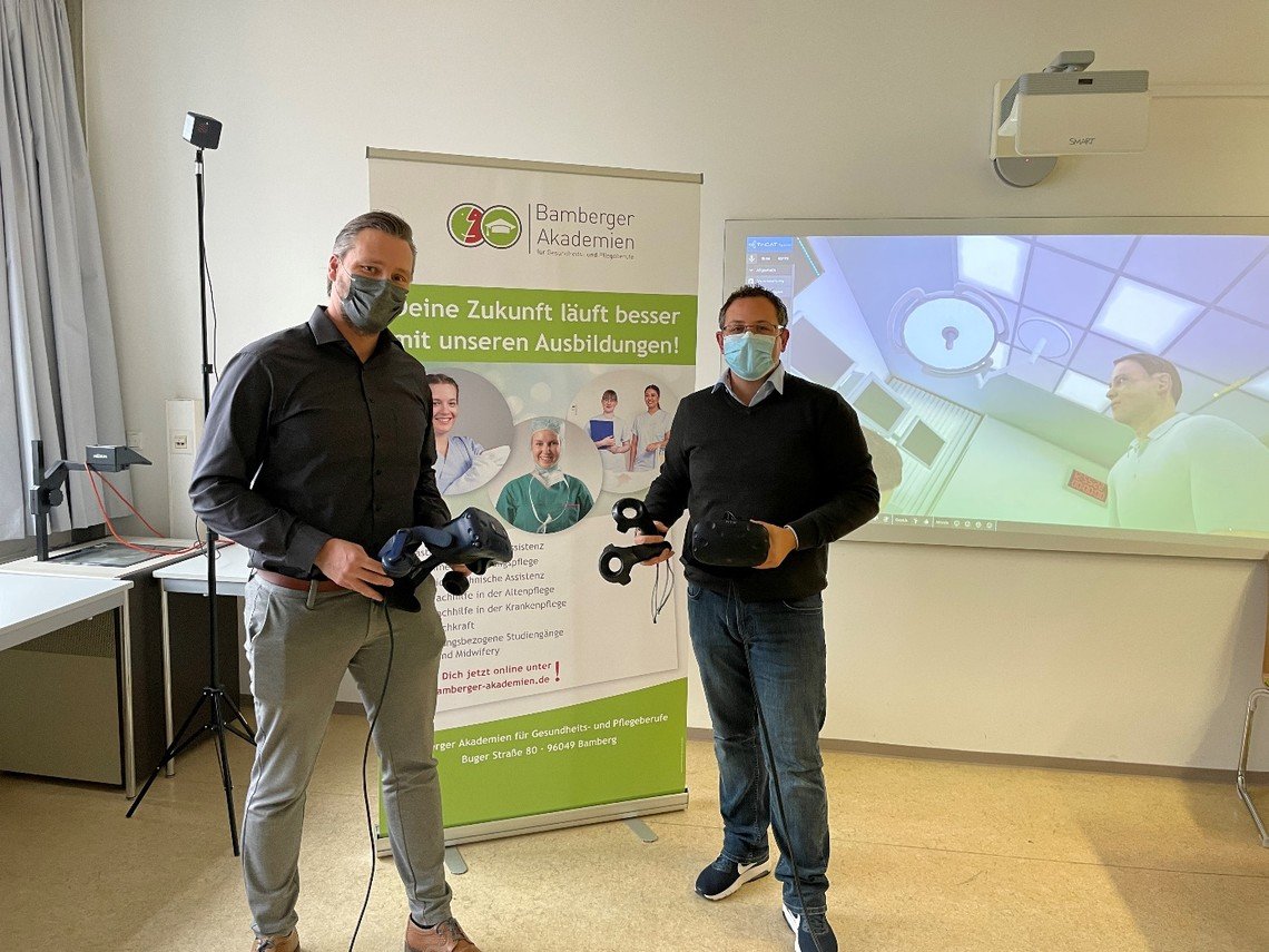 Am Skills Lab der Bamberger Akademien für Gesundheits- und Pflegeberufe wird zukünftig mit VR trainiert. Nach einigen Monaten der Planung und Ideensammlung haben die TriCAT GmbH aus Ulm und die Bamberger Akademien die Projektarbeit im Dezember 2020 aufgenommen.